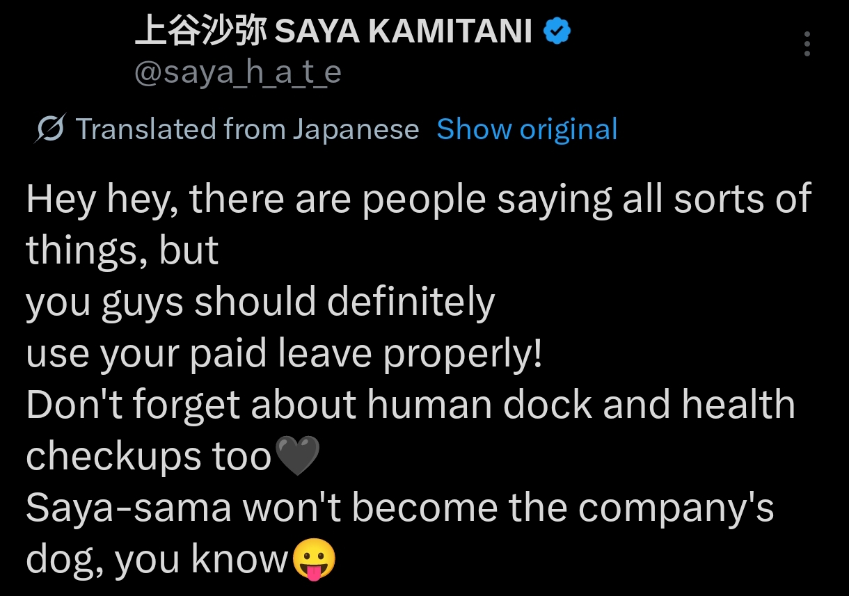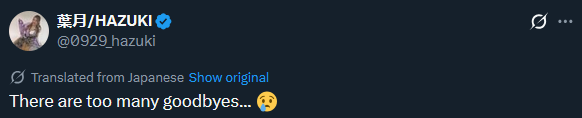 >>19661310it was deleted after yuna manase told her to delete it, but when mina announced she was leaving she posted>In my sleep...I didn't know anything about it until the official announcement just now. I supported her dreams, I supported her dreams, and now I thought of her as a good comrade in arms to talk to about anything. It wasn't about quitting, but the fact that she never said a word to me in the end is hollow. I've been thinking about this for a while now, but please keep up the good work with only the stakes and yourself. I'm still not good at these women.yuna's reply to it is still uphttps://x.com/yunamanase/status/1304390916128423936