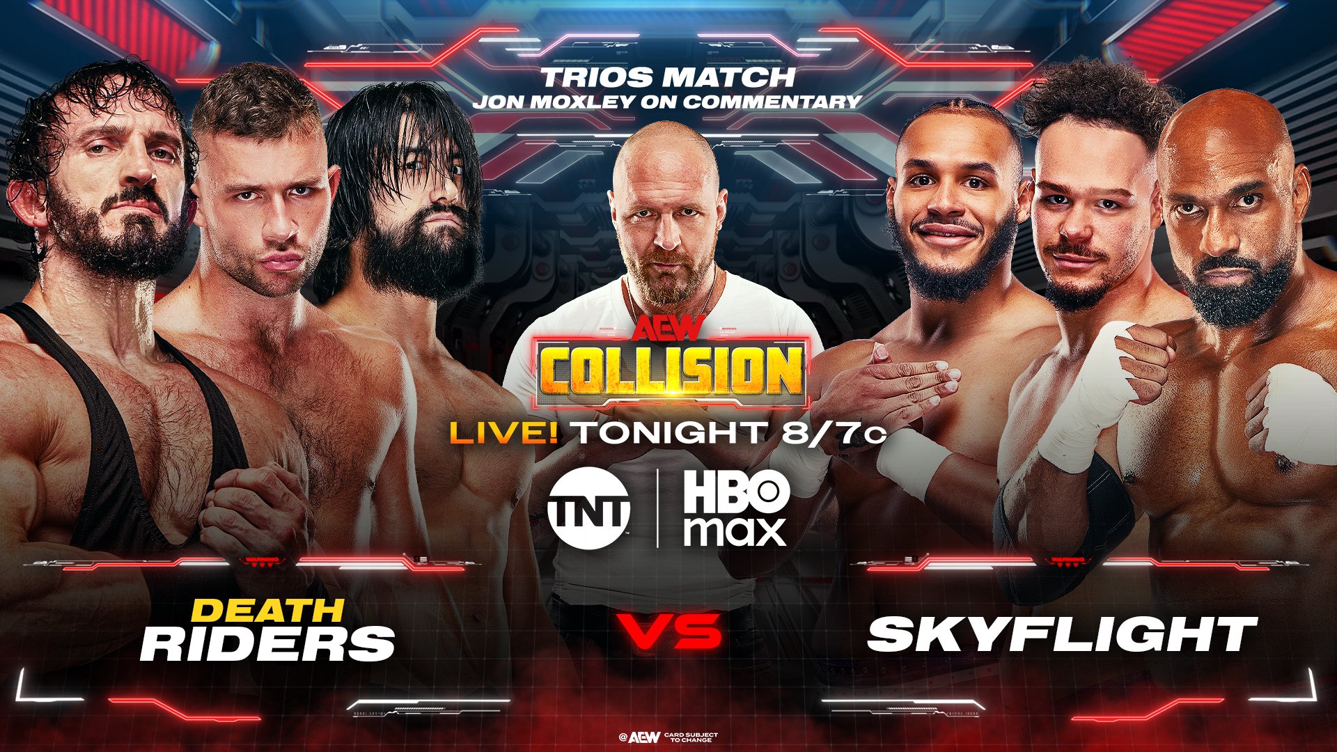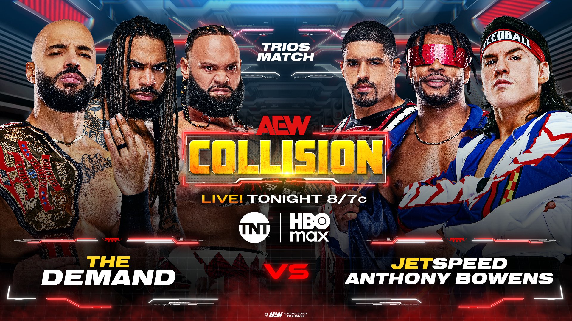 Gold At Stake Alongside Trios And Lucha Action As The Esports Stadium Residency Continues!...Saturday Night AEW Collision live TONIGHT! from Esports Stadium Arlington in Arlington, TX8/7pm CT on TNT & HBO MAX!>Mark Briscoe (c) vs. Hechicero for the TNT Championship>Komander vs. Ë̶͖̙́l̸͔͓̋͗ ̷̻̘̑C̴̺͉͛l̷͉̦̆̀ǫ̴̤̉n̷̨̹̉̉>Kris Statlander & Babes Of Wrath vs. Hyan, Maya World, Vertvixen>And More!** 35 Days Out From Grand Slam Australia **** 64 Days Out From Revolution **