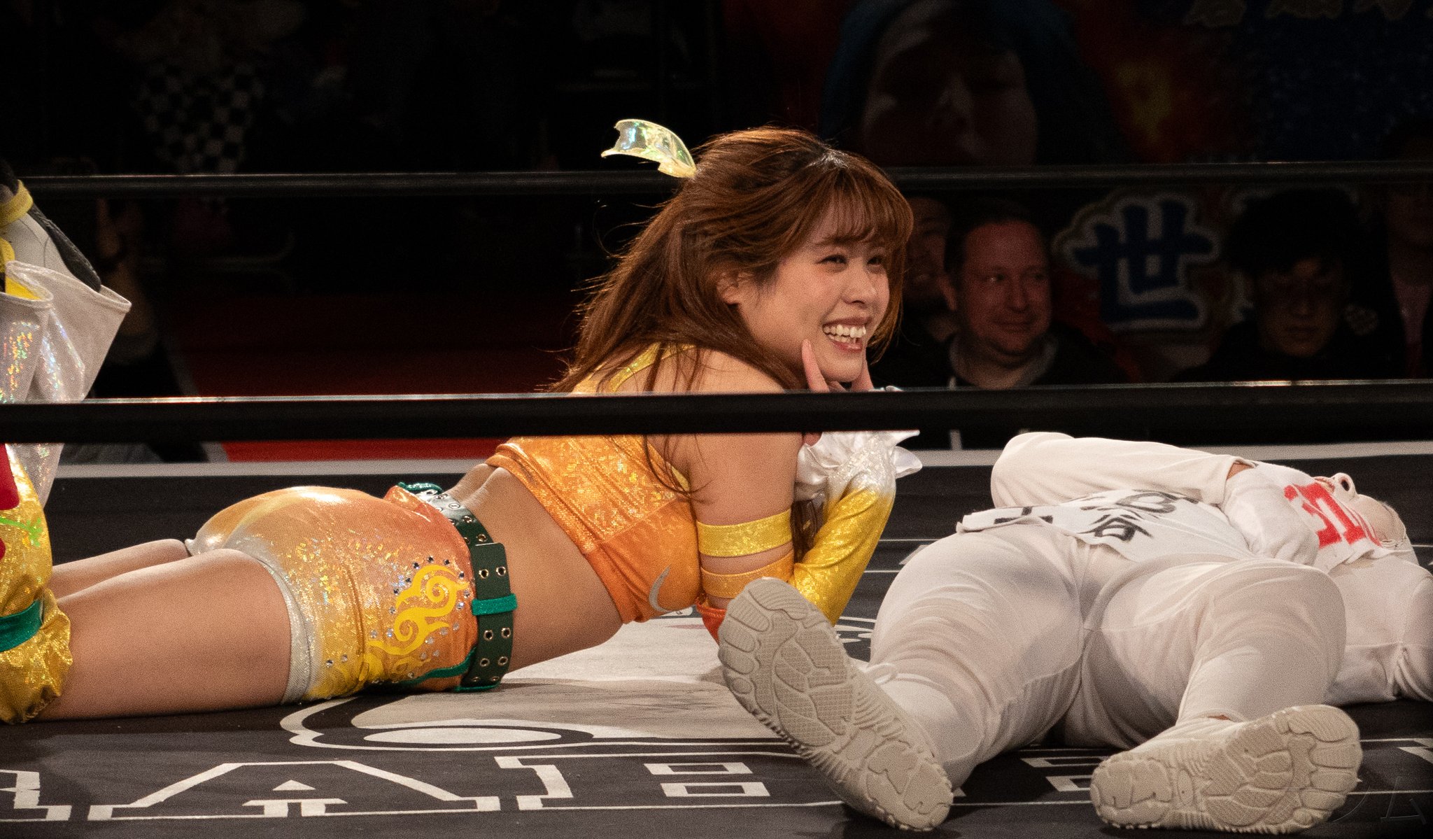 >Since I'm still a total pro wrestling newbie, when Koguma suddenly started chanting "Kuma" over and over while coming at me, I was so confused but still attacked, and then I got totally booed—that was so freaking confusing, I had no idea what was going on I really got super intense booing