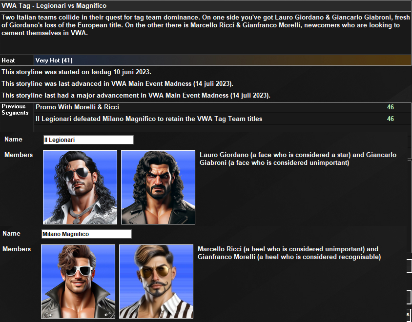 >Into the scene bursts two new, young Italian wrestlers, Marcello Ricci & Gianfranco Morelli, they're model themed (gimmicks are Catwalk Cocky and Standard Model) so I named the Milano Magnifico.