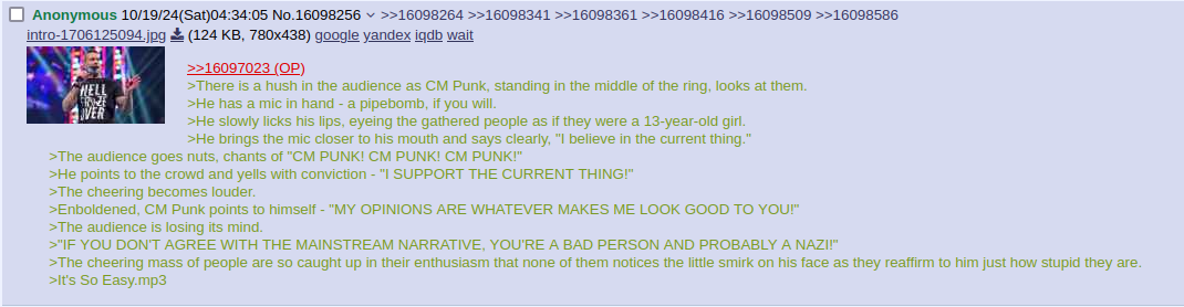 It's ironic he was ever named punk considering this dude has the most cum guzzling normie opinions it is possible to hold.