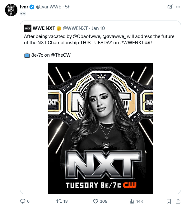 HOWEVER ivar is going to NXT to win the title