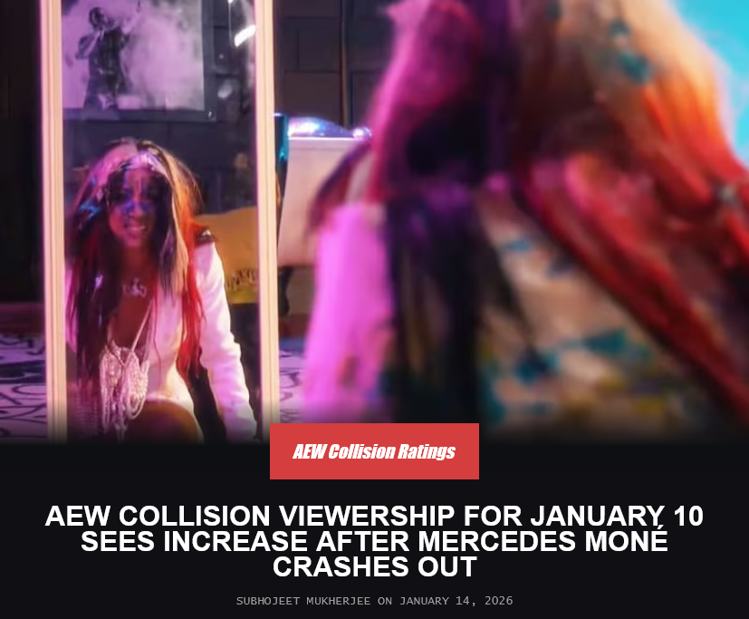 >According to Wrestlenomics, the broadcast averaged 271,000 viewers on TNT, up from 241,000 viewers on January 3. That represents an increase of 30,000 viewers, translating to a 12.4% rise in total viewership. In the key P18–49 demographic, Collision held steady week over week. The episode posted a 0.03 rating, unchanged from the previous week’s 0.03.