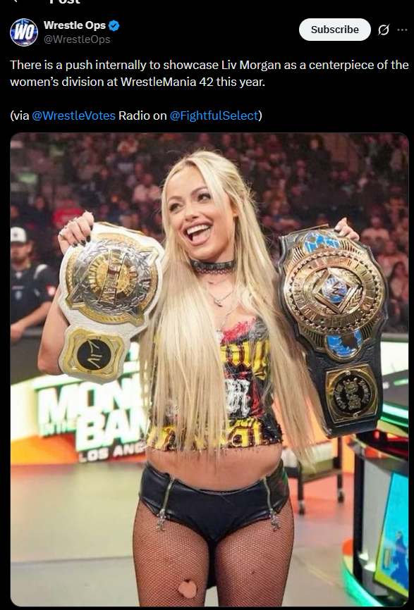 Wrestlemania is when the biggest stars and best wrestlers are showcased. Rhea Ripley, Iyo Sky, Charlotte Flair, Becky Lynch, Asuka, Stephanie Vaquer. Mid Morgan has never done anything at Wrestlemania except be involved in meaningless tag team matches because she is neither a star or good wrestler.