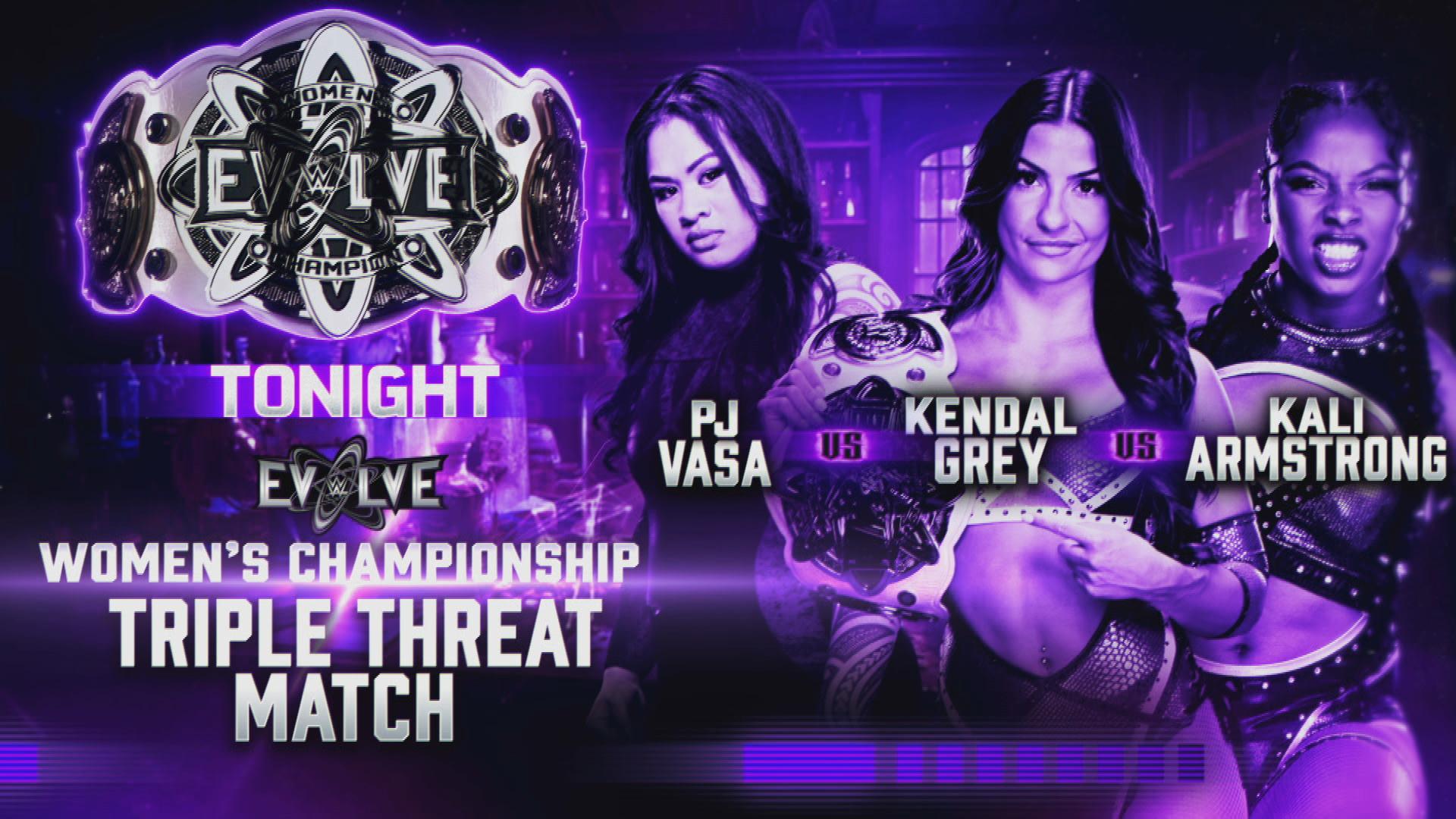 >WWE EVOLVE Women's Title:Kendal Grey (c) vs. Kali Armstrong vs. PJ Vasa
