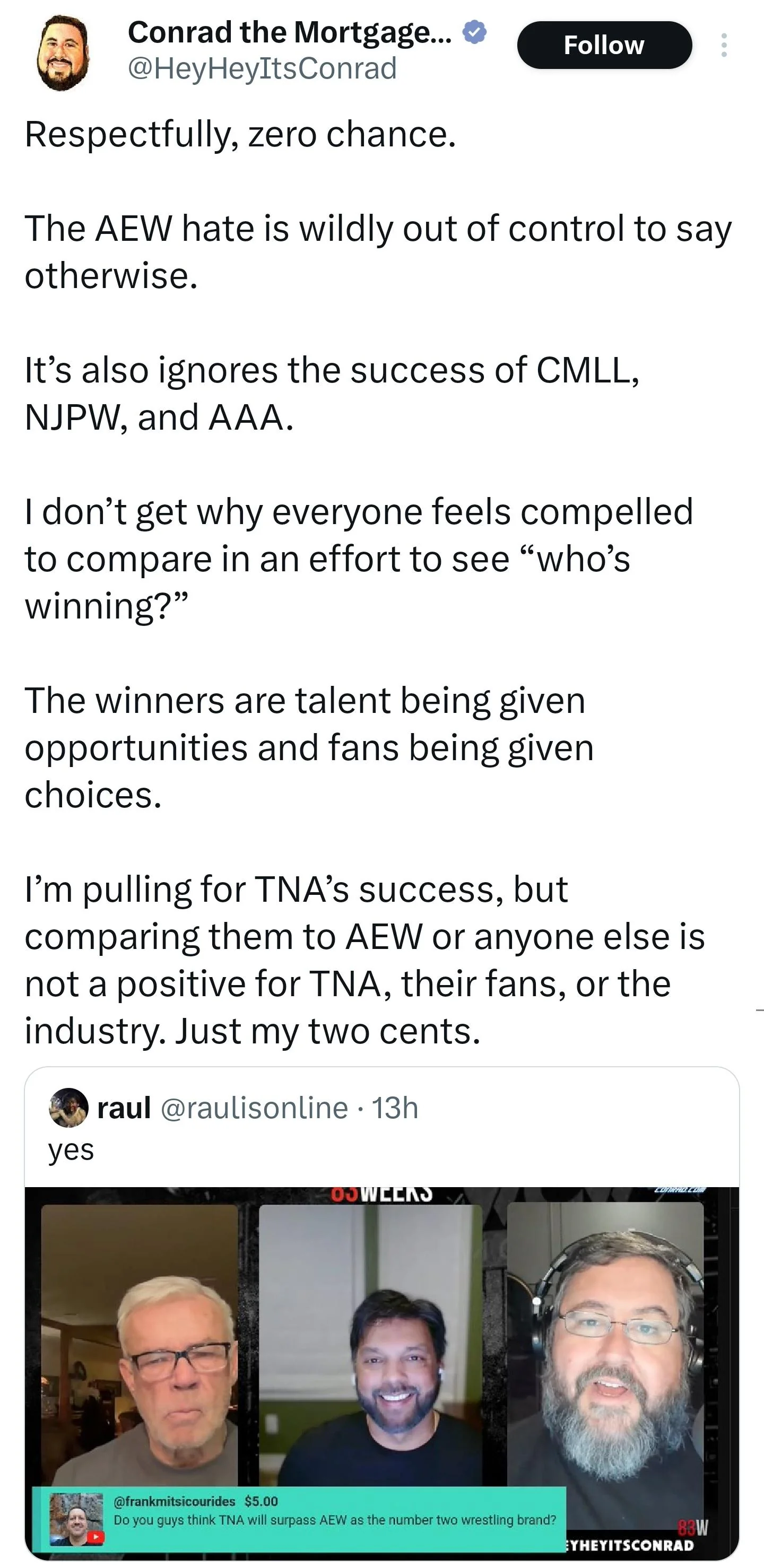 Why not compare TNA with AEW? Currently they're very close to each other in terms of competition.