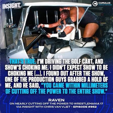 so there is some single power cord that powers all of Wrestlemania? and it's so fragile that a golf cart can't drive over it even though you can drive a dump truck over any power cord in your house right now an it'd be fine? what kind of shit if this carny retard making up?