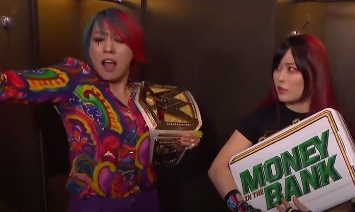 Punished Kairi Edition:Asuka declared for the Royal Rumble and Kairi desperately vowed to help her win. Will Kairi be able to do it or disappoint Asuka again?IYO and Rhea are the WWE Women's Tag Team Champions. They will defend the title against Liv and Roxanne at SNME.Giulia is the Women's United States Champion. Giulia deserves better.Sareee is carrying on the spirit of Inoki.Meiko is leading Sendai Girls.Xia and Wendy posting is fine; they're just not officially part of the Klub.>Giulia & Kiana James vs Alexa Bliss & Charlotte Flair vs Lash Legend & Nia Jax. SmackDown, January 23rd>IYO SKY & Rhea Ripley [RHIYO] (c) vs Liv Morgan & Roxanne Perez [Judgment Day] for the WWE Women's Tag Team Championship. SNME, January 24thhttps://x.com/WWEAsukahttps://x.com/KAIRI_officialhttps://x.com/Iyo_SkyWWEhttps://x.com/giulia0221ghttps://x.com/Sareee_officialhttps://x.com/satomurameikohttps://youtu.be/3B_0HsAhuaMhttps://youtu.be/x74xvn2T18Ehttps://youtu.be/N0qjhprjUeIKCTV Asuka face paint tutorial:https://www.youtube.com/watch?v=wtA0agQ8Nz8Previous: >>19694180
