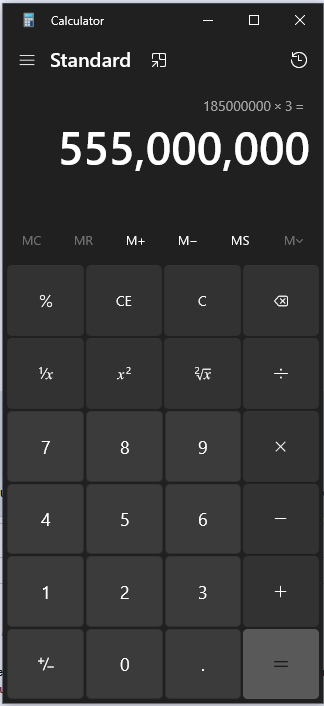 >>19726162$185 million per year x3 years = $555 million = more than half a billion dollarsyou retard
