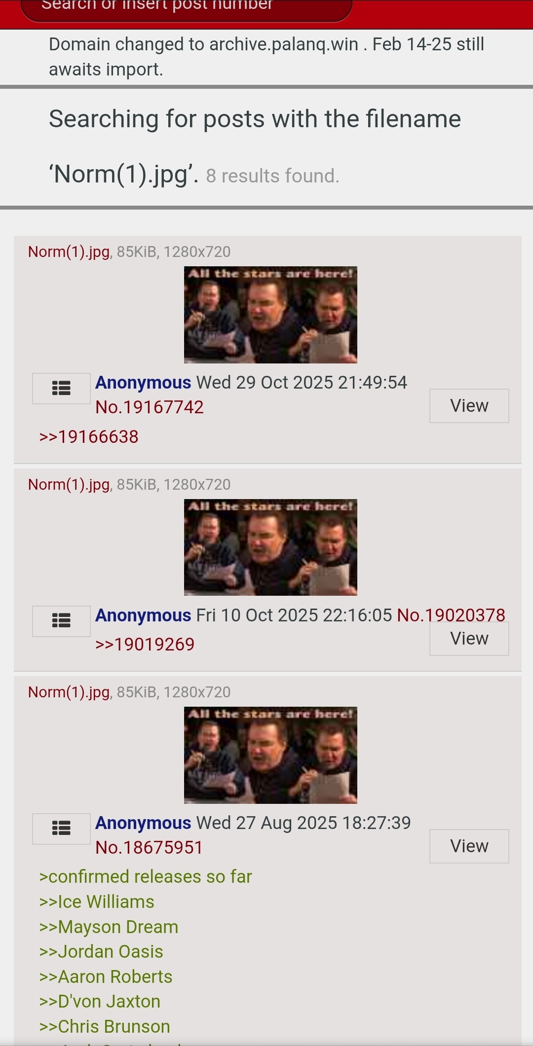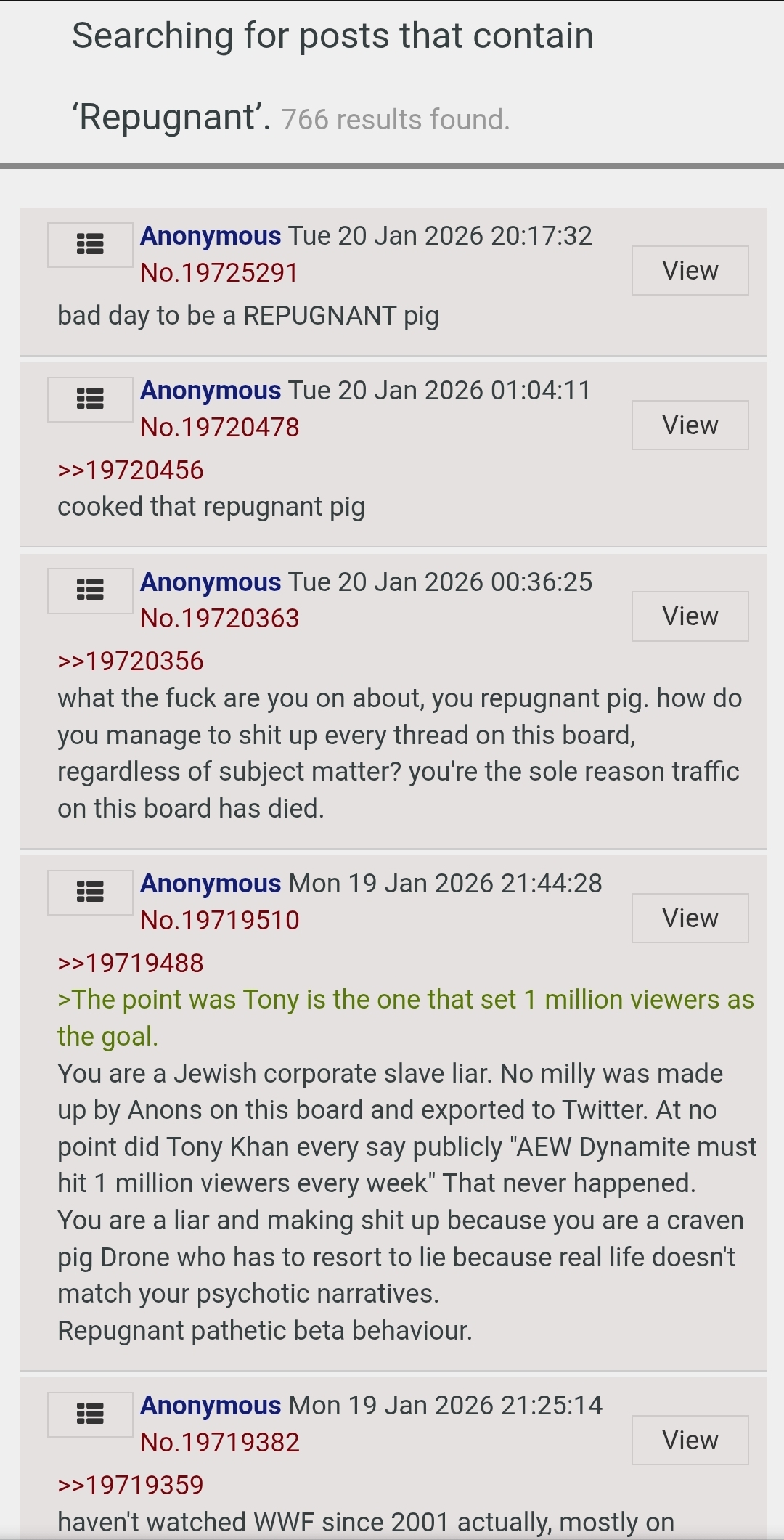 >>19727250>>19727251>>19727253It's so strange that for 15 minutes the spam stops and then at the same time it all picks up. No way it's just one singular AEW pedo right?