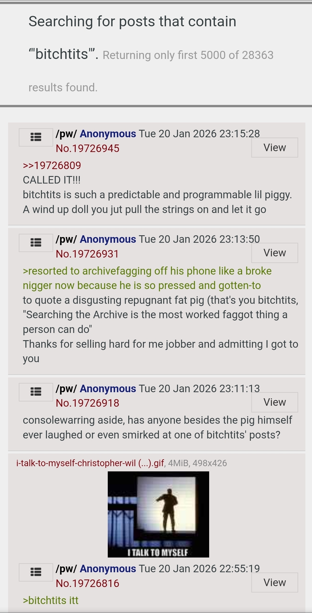 >>19726966>Searching the Archive and screencapping it and posting it here is the most worked faggot thing a person can do. Just FYI.AH, YEZZIR
