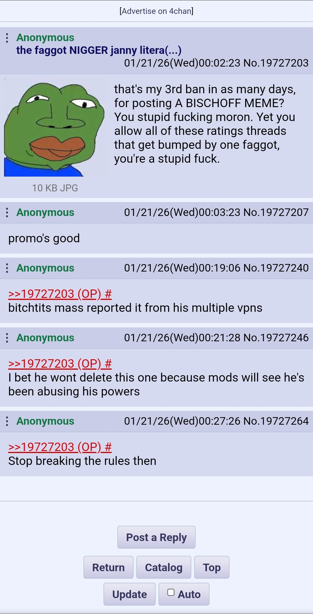 >>19727158Even the jannies are getting tired of him kek