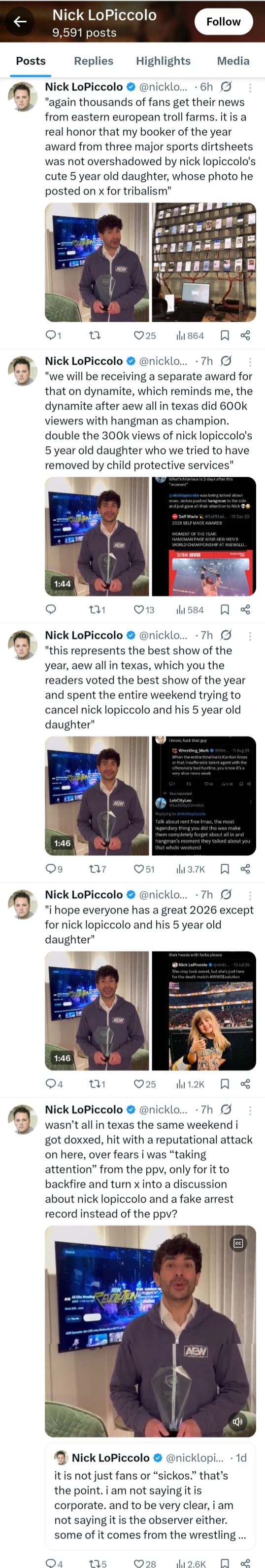 Do any of his clients actually know how mentally unwell he is? It would be a shame if people started tagging them in the comments of these meltdowns.
