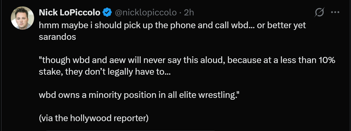 >maybe if I get WB to cancel Mark Brisco, I can get the AEW fans to turn on Tony!Psychotic behavior from e-drones as usual