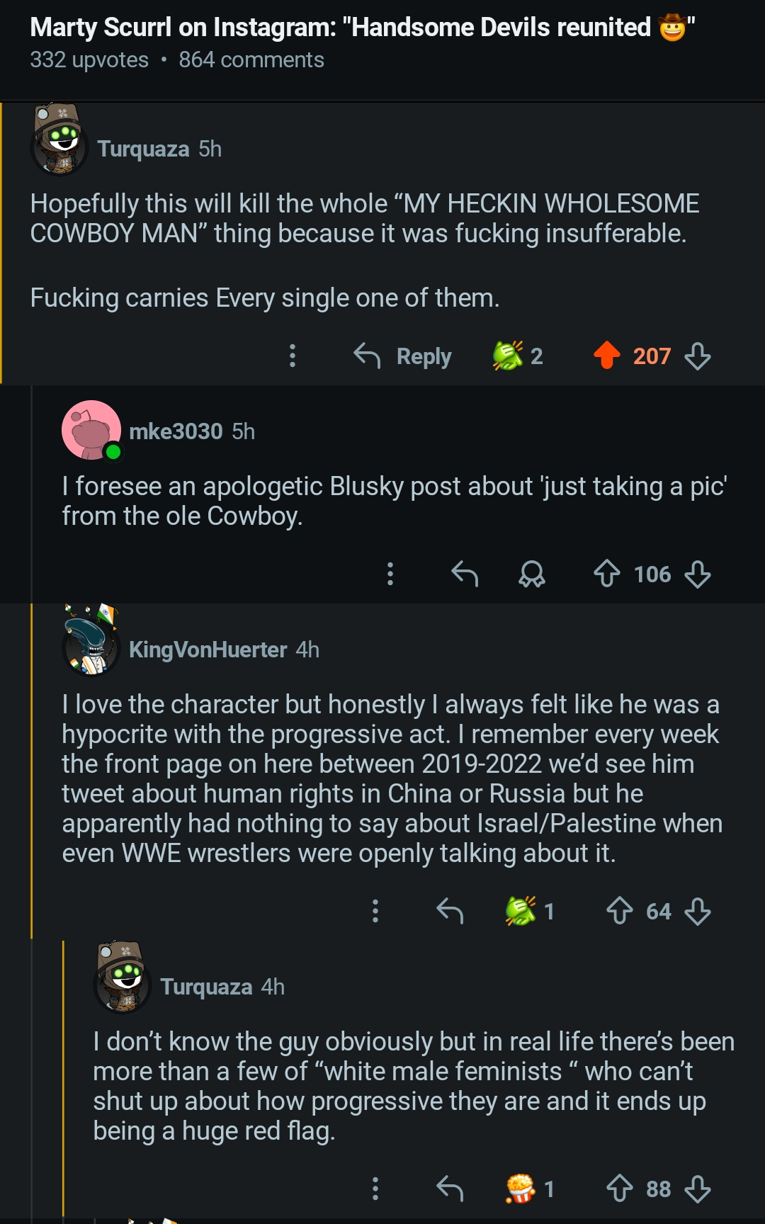 >redditors actually caring about this>e-drones desperately trying to cancel himmodern wrestling fans are so gay