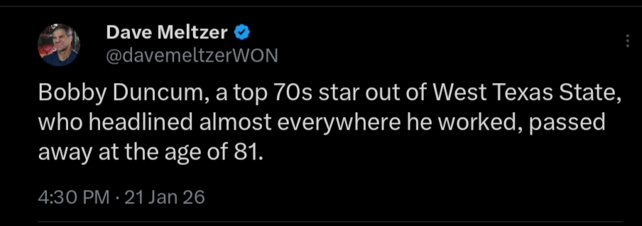 >>19730780Today I found out that Bobby Duncum Jr died before his dad, just like Curt Hennig. That's sad