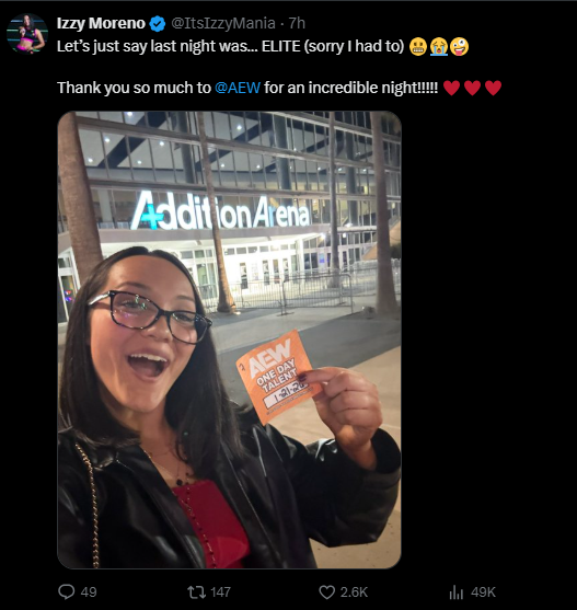Izzy had a good time at A E W last night