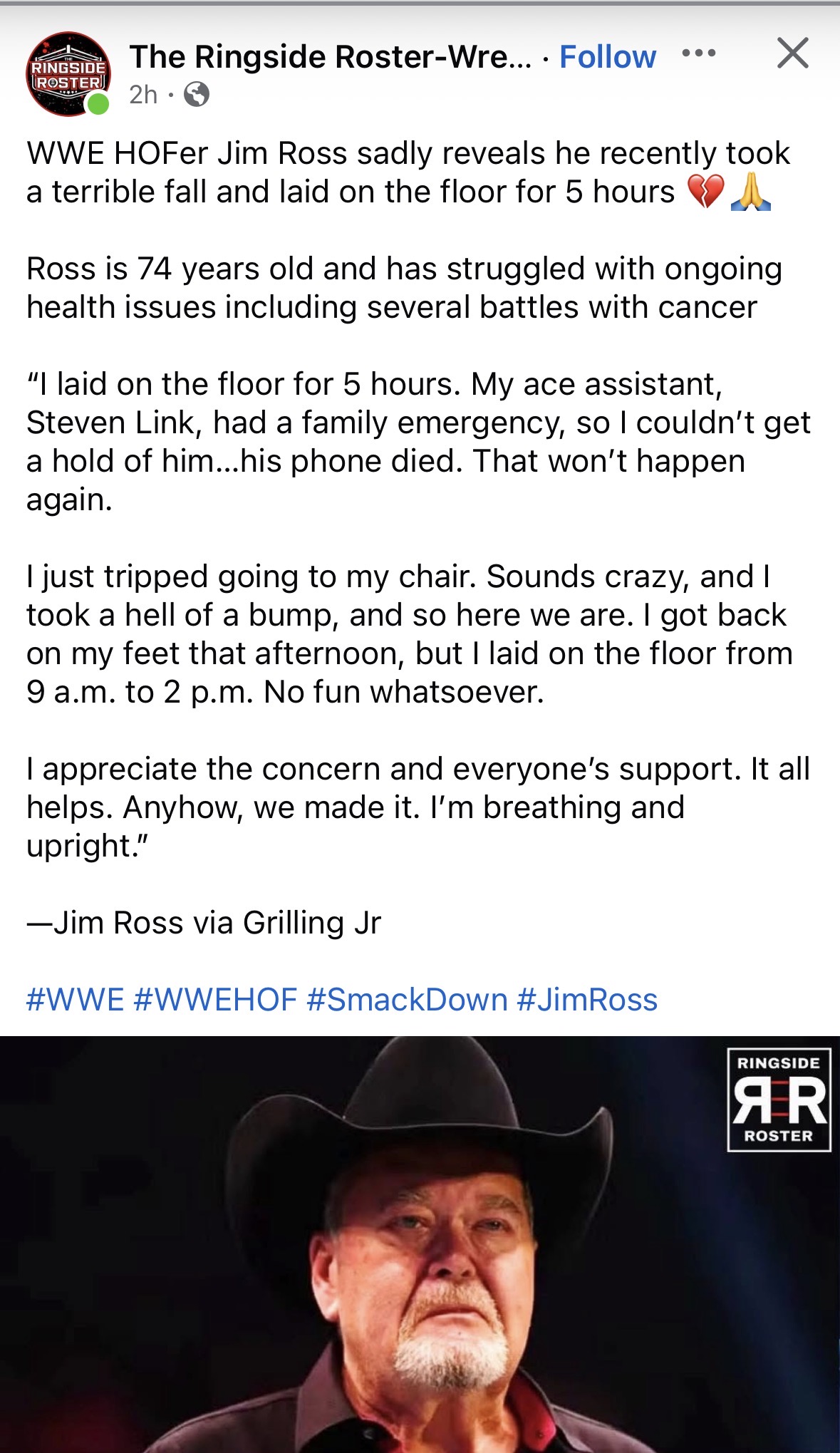 That's how Scott Hall died, broken alone and forgotten on the floor of his home. A few more hours and JR would have been rat food just like him.