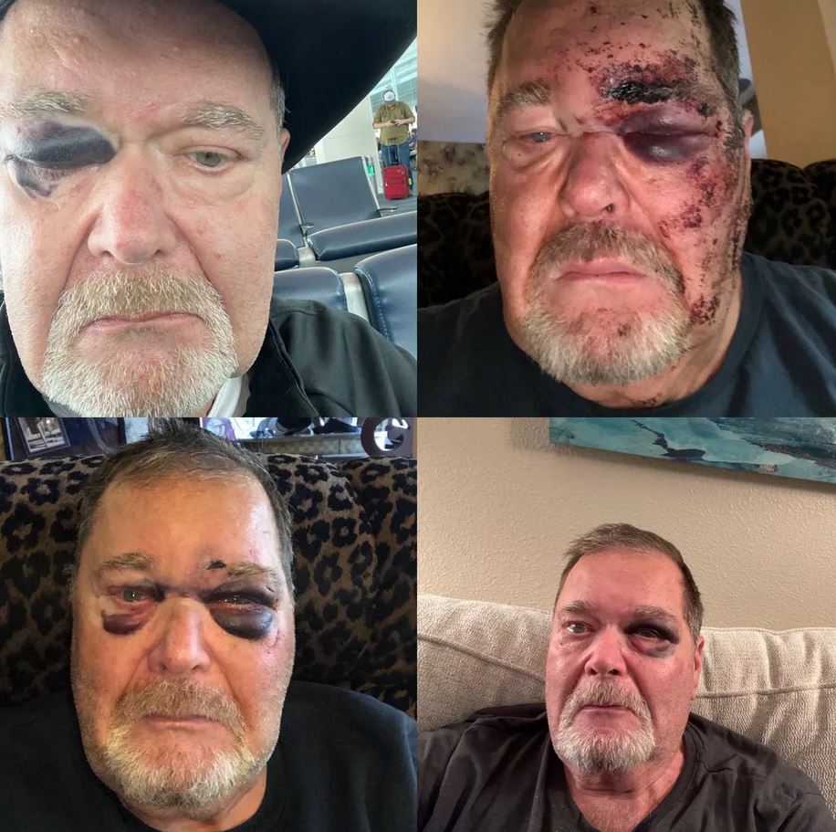 I swear to god this old fart is always falling down and getting black eyes