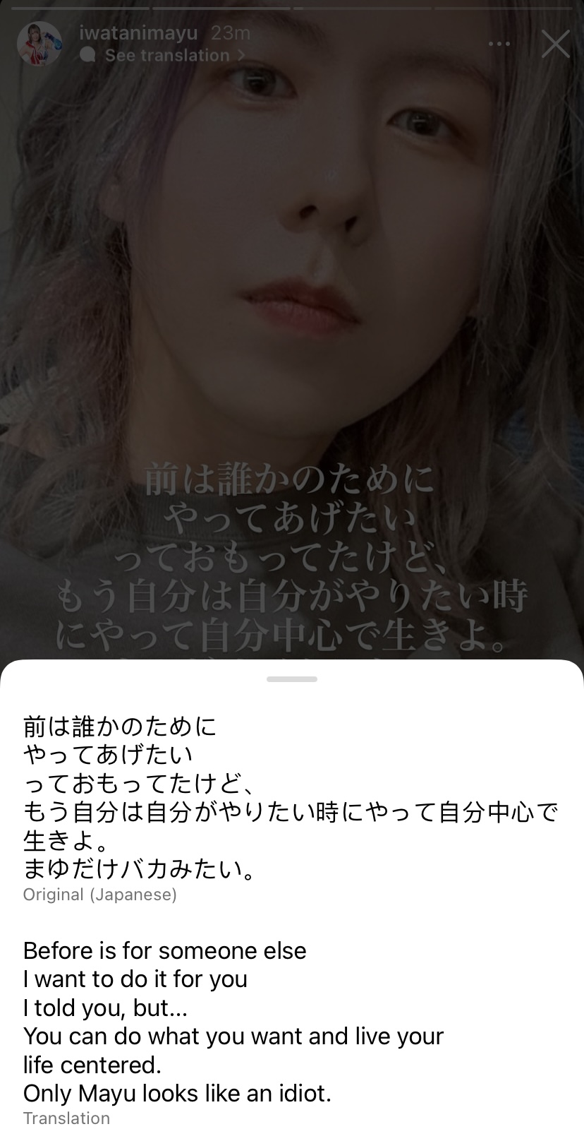 >Calls herself the icon of professional wrestling (male and female) yet can't sell out her 15th anniversary show>No guests on the card, just randoms giving her flowers>Releases illegal merch for her anniversary and gets in trouble (alcohol and cards based on copyrights she doesn't own)>Puts on a 14 minute main event title match against Utami where both look like they don't want to be there and shit up the place>Post match interview blames Rossy for everything that happened this weekMayu Iwatani everybody