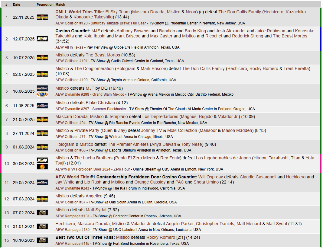 The problem is that CMLL has always done so well, maintaining the #1 spot in Mexico, that's why they stagnated for so long without offering anything new.When the company's former director died, his daughter took over for a few months, planning to bring in new and fresh ideas, such as the aforementioned alliance with WWE. But she was dismissed and replaced by Salvador Lutteroth III. That woman began bringing independent wrestlers to Arena Mexico, including the first appearances of Fenix and Penta there.The thing is, Arena Mexico has maintained its privileged position as the #1 wrestling company for decades, and that's not exactly thanks to AEW. But at least that alliance has certainly been very beneficial for both, bringing fresh dream matches that would have been unthinkable before.