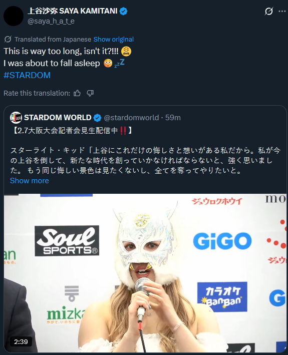 >On the 27th, the women's professional wrestling company Stardom held a signing ceremony and press conference in Tokyo for the "STARDOM Supreme Fight in OSAKA 2026" (Celebrating the 15th Anniversary of Stardom's Founding) (February 7th, Edion Arena Osaka). After the press conference, President Taro Okada gave a roundtable interview and explained the follow-up to the "Notice" regarding portrait rights issued on the 19th of this month.>The notice also suggested that other companies were violating portrait rights, stating, "Currently, other companies are manufacturing and selling card products using the portraits of players who have previously belonged to our company," and "We intend to consider taking necessary measures to protect the intellectual property rights that we own or manage in the future.">On this day, President Okada did not specify who the "other company" was, and did not go into details, saying, "There is another party involved." However, this does not mean that he is not doing anything at the moment, and when asked, "Are you responding quietly?" he nodded, acknowledging that some kind of action is being taken.Tick tock Rossy