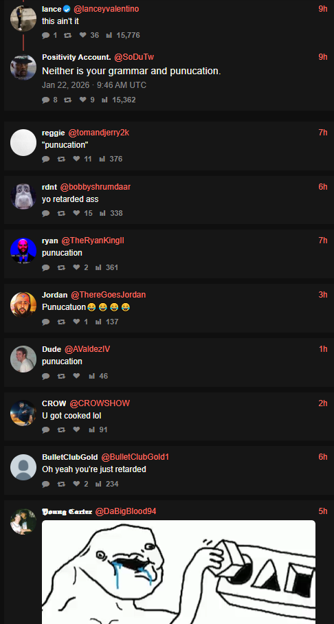 The singular AEW pedophile is getting so badly raped he's typing in spanish now LMFAOO