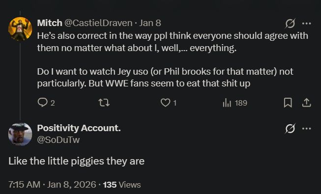 The singular AEW pedo is melting down because this already has more replies then the ratings threads he makes that he bumps by himself for a month. He loses sleep over self bumping threads LMFAOOOO