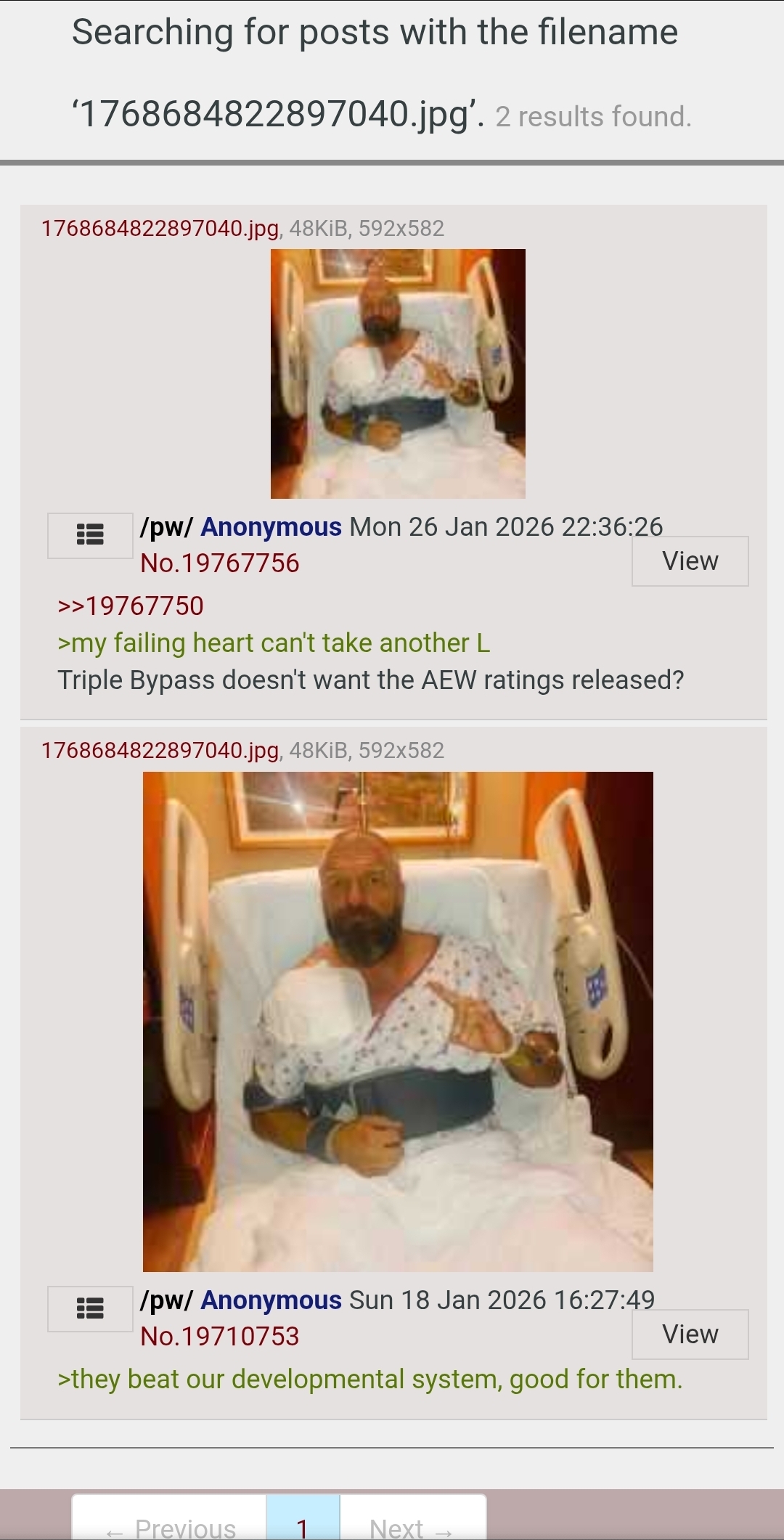 >>19767750>my failing heart can't take another LTriple Bypass doesn't want the AEW ratings released?