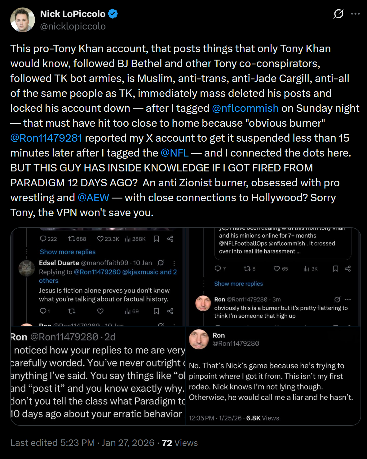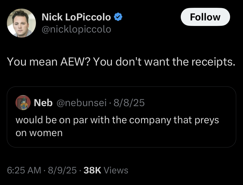 https://x.com/nicklopiccolo/status/2016225956458061977Nick got another one of you AEW trannies to close your account in fear jej