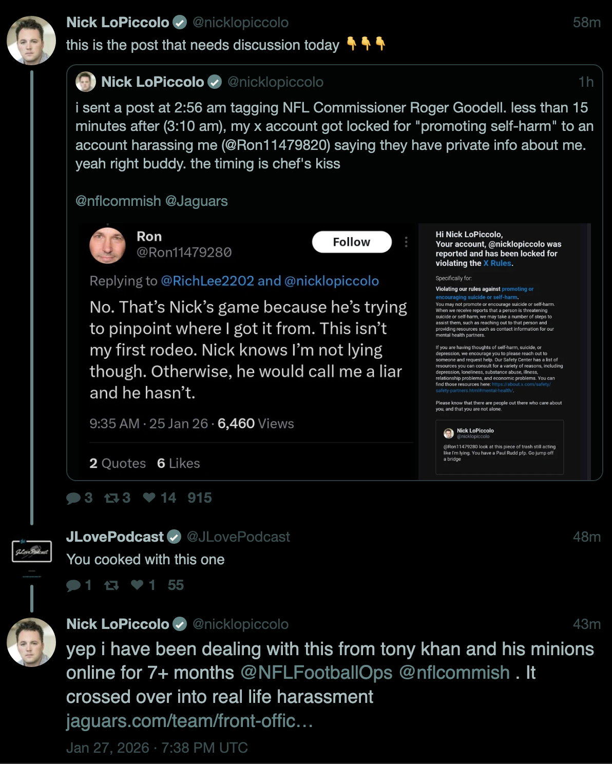 It's funny because the more this gets posted, the more people realize that Nick is 100% right about all of it. It's a symptom of the larger problem. Tony will send these shills out to attack people, but they're so impetuous, once the cat is out of the bag it's never going to stop. It's getting more and more tortious with each passing day. That's right. Tortious