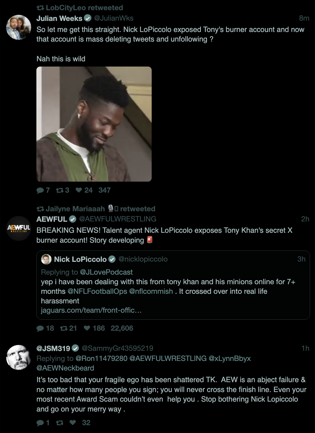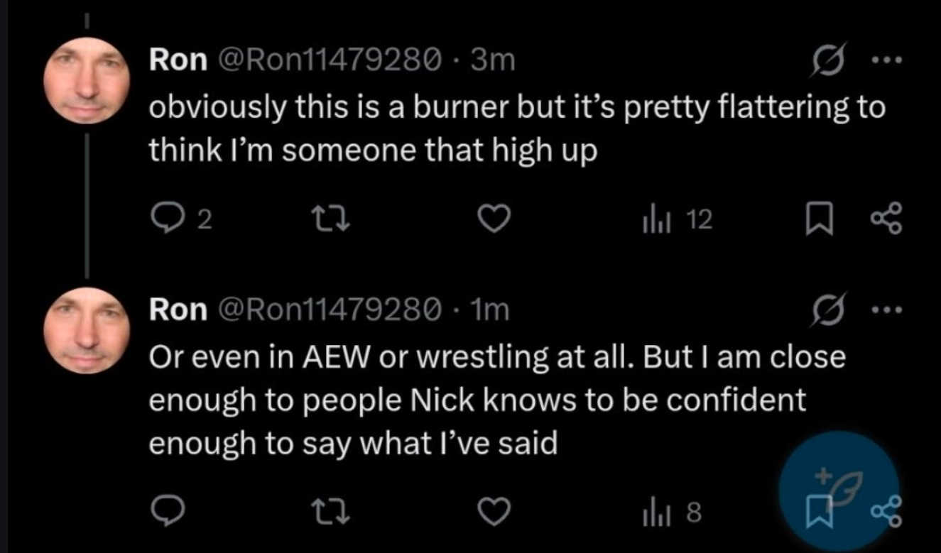 >>19769949More proof that CripplePig posts here all day, because he also keeps posting about this random guy obsessively on his Twitter, all because "Nicky" makes fun of AEW.