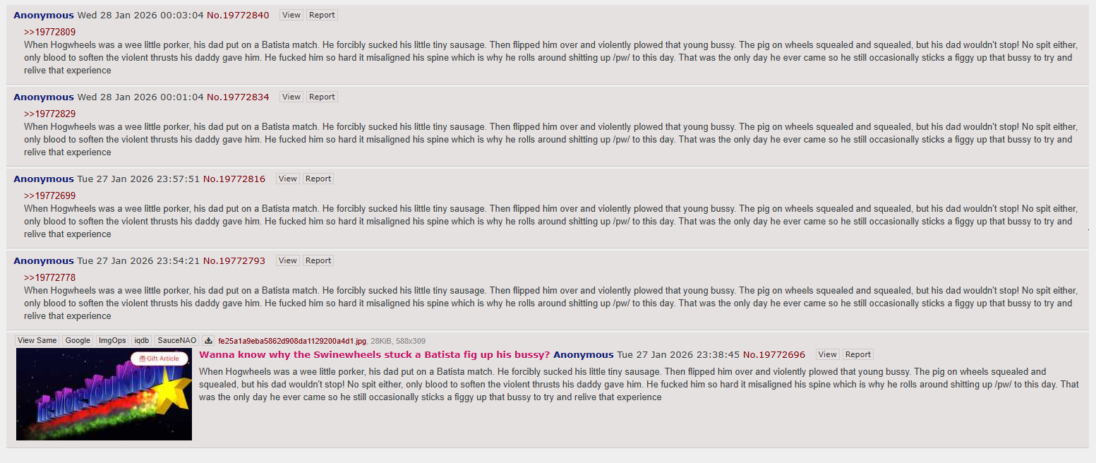 >>19774599he truly does. Look at all these receipts we have on him doing that;>>19772994>>19773026>>19773043He's back to doing ITT right now too >>19774550 >>19774289Nothing excites him more than posting about children being raped.