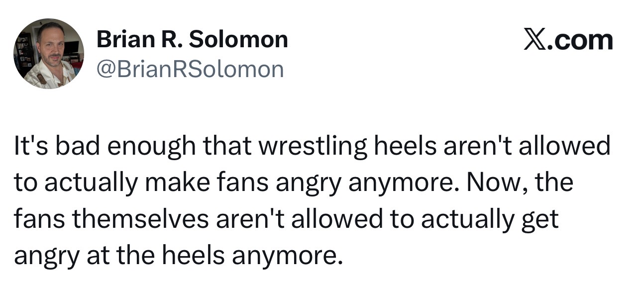 >>19773451I remember when Heels would think it was a badge of honor if fans were yelling at them >I HOPE YOU FUCKIN DIEbe like fuck yeah i got some heat and heels shitting all over the crowd calling them fat useless slobs and booing and not being a faggot over it because we knew it was part of the show.
