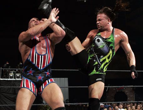 Sorry, I hated him during the Alliance angle because he was the only one fromECW aside from Rhyno that they pushed. Whoa weed dude kicking bitch.