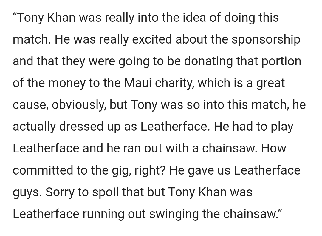 >>197805672023, if I recall correctly. There was a Texas Chainsaw match promoting the game. For some reason Tony Khan came out dressed as Leatherface and had a major spergout