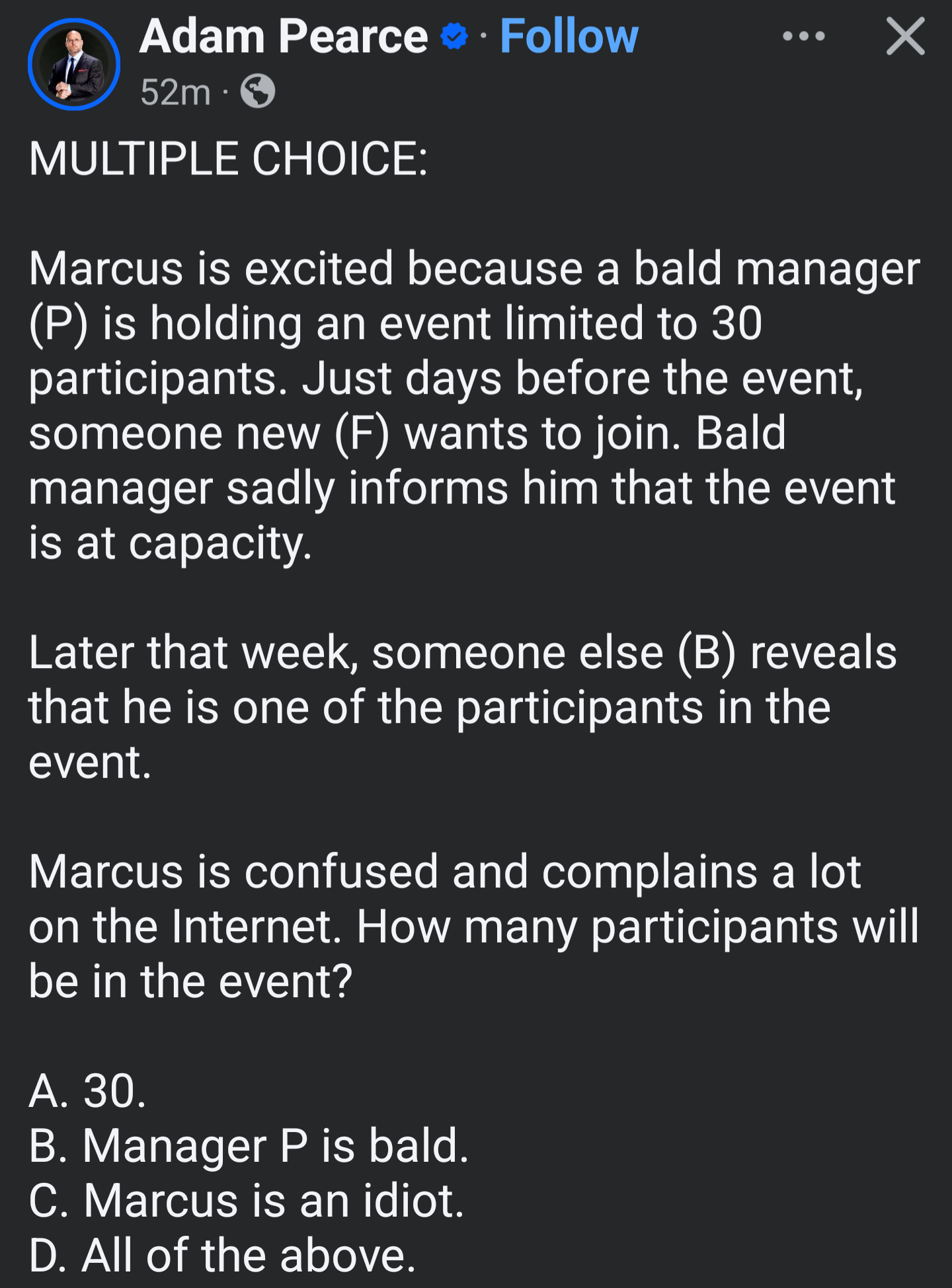 >>19782416E. Marcus heems one of the 30 and is slotted in last minute