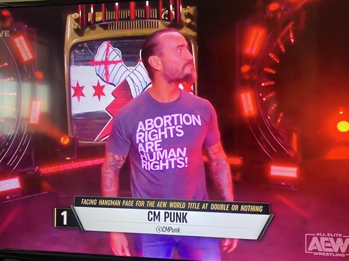 >he says while wearing AEW merch