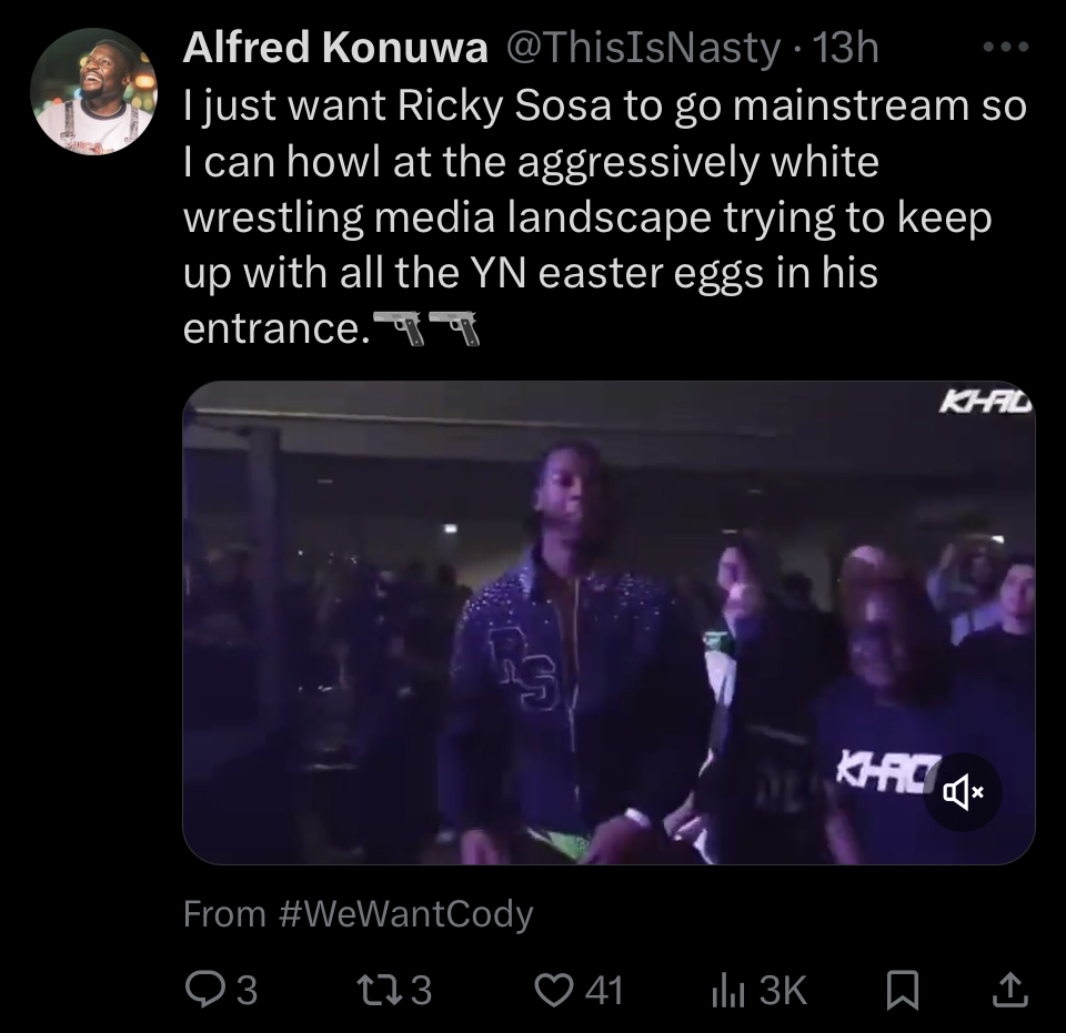 Alfred is one of the most important people in wrestling media these days. We NEED more black voices to be heard. There isn't enough diversity in the white man's narrative.
