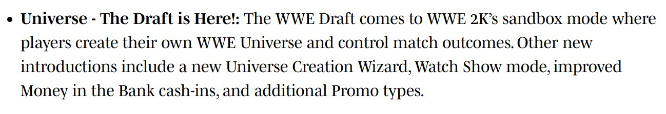 >we added back the draft that was in like WWE 12 and here comes the pain