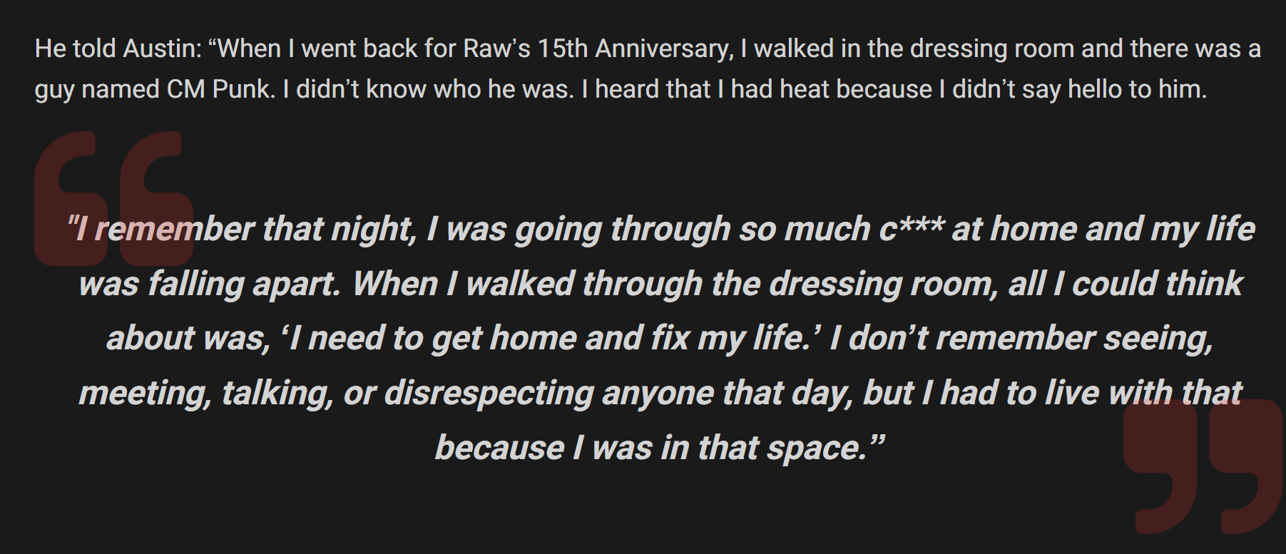 Punk is full of shit as usual. He was a Hulkamaniac that got snubbed