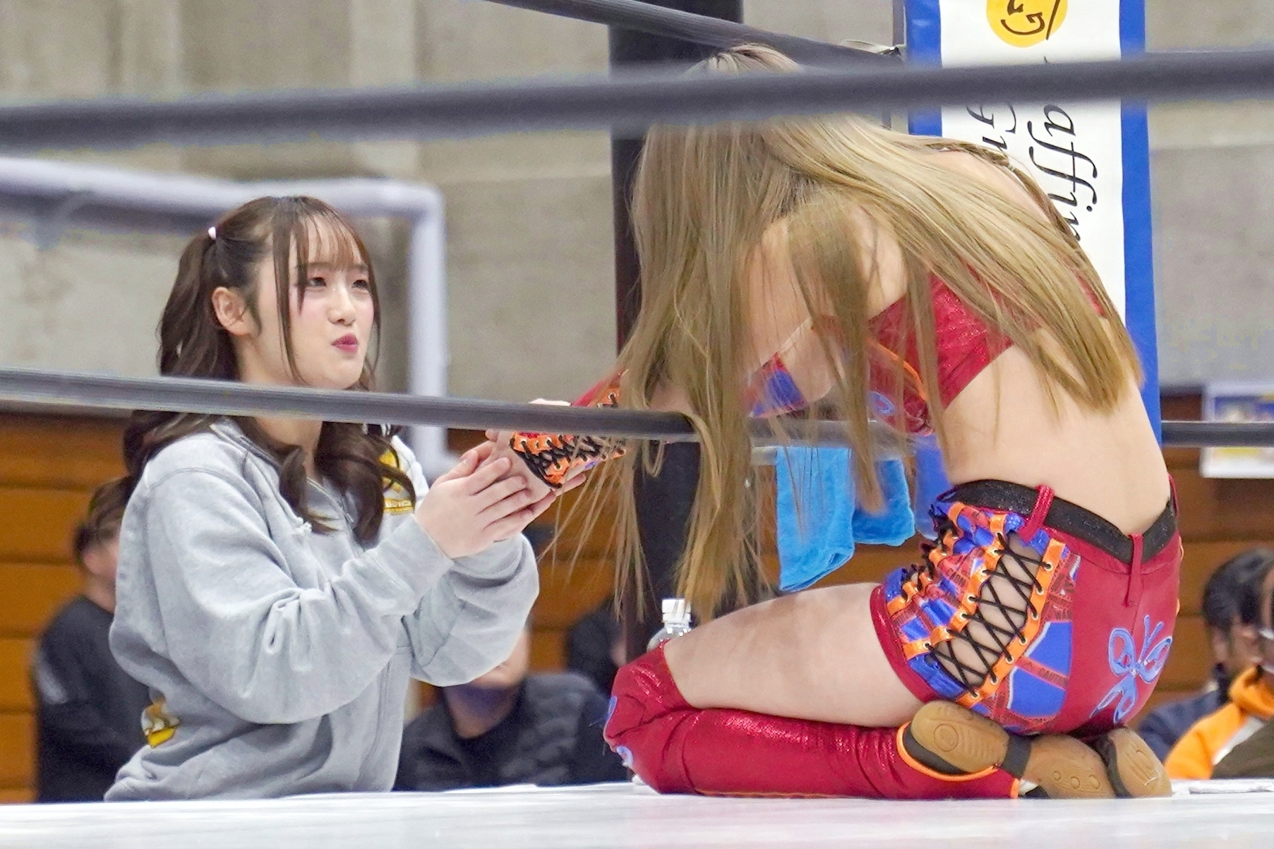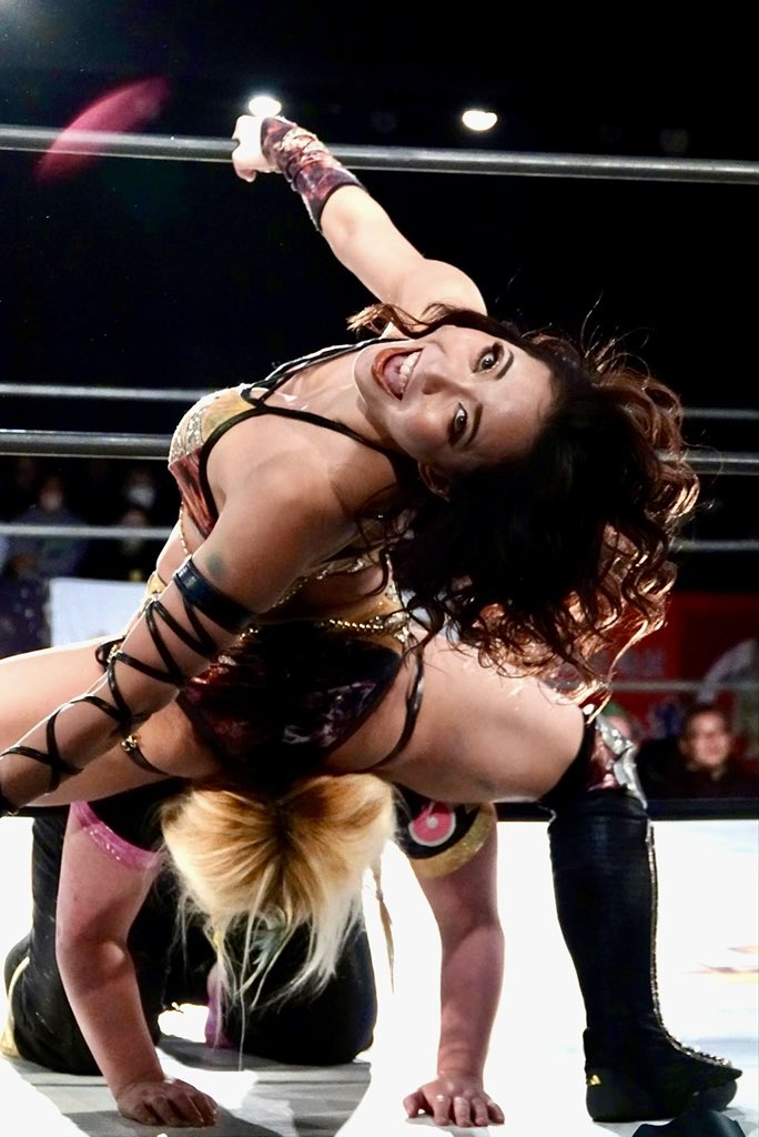 Mayu is wrestling a porn star and a trannie. Good for her.