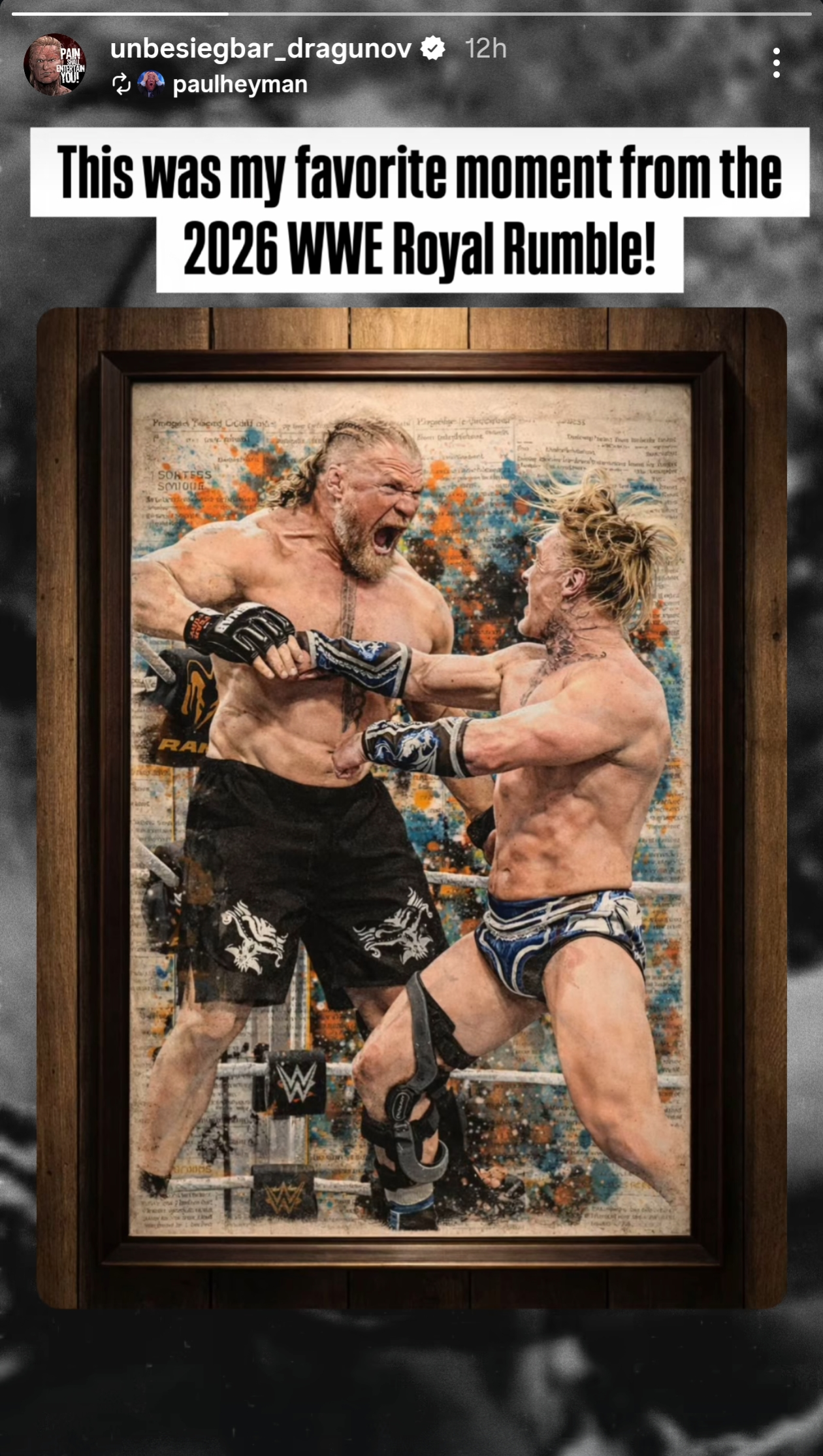>>19817304as a fan of ilja even i think that brock should no sell his shit, at least his more filler moves in a rumble setting. it's brock lesnar, he can and has sold for little guys but there's a time and place for it and the rumble where he's going to be made to look like a monster just is not it.i'm also 99% sure that brock did not know who ilja was before the rumble.