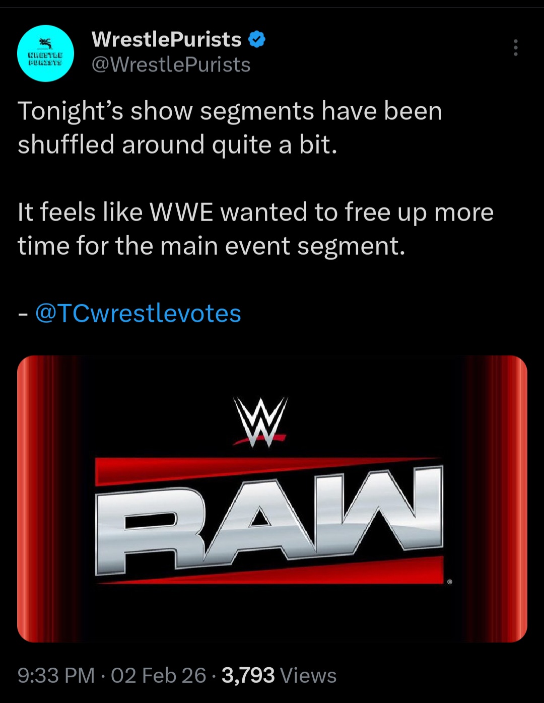 If it was AEW that crip would be praising
