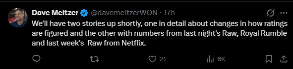 >>19829452This being on the same day as the Rumble and it still skyrocketing? I'm guessing the new panel data are fleshing out how they measure wrestling ratings, because every other sport, apart from wrestling didn't make any sense.