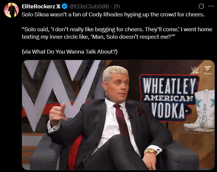 Solo took Cody aside and told him to stop begging for cheersHoly shit what a chad