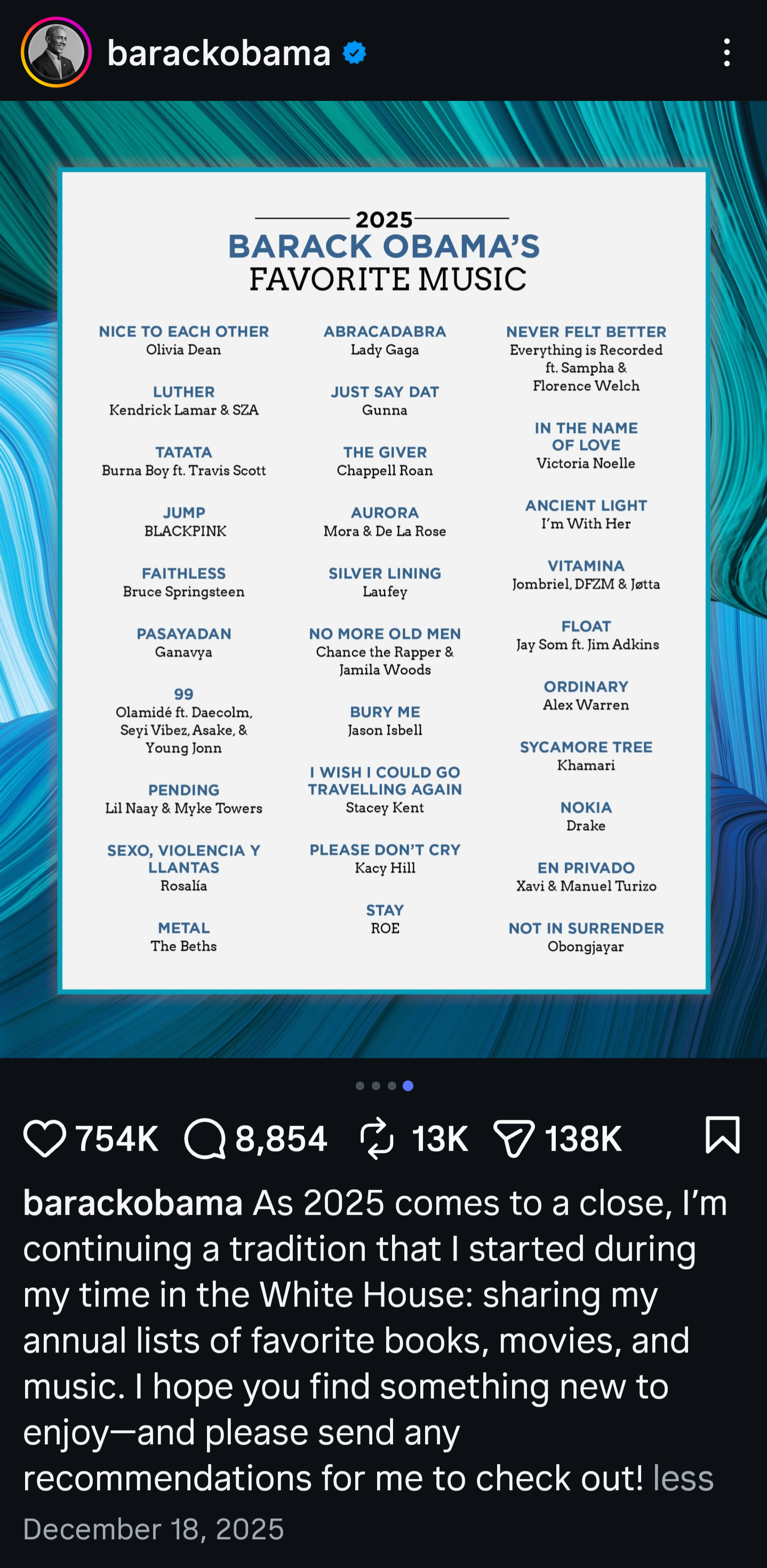 >>19844217Obama does not make any of these lists. They are so soullessly curated they may as well be generated by ChatGPT. Any list made by an actual human being would have guilty pleasures and other surprises, unless Obama really is that big of an NPC.