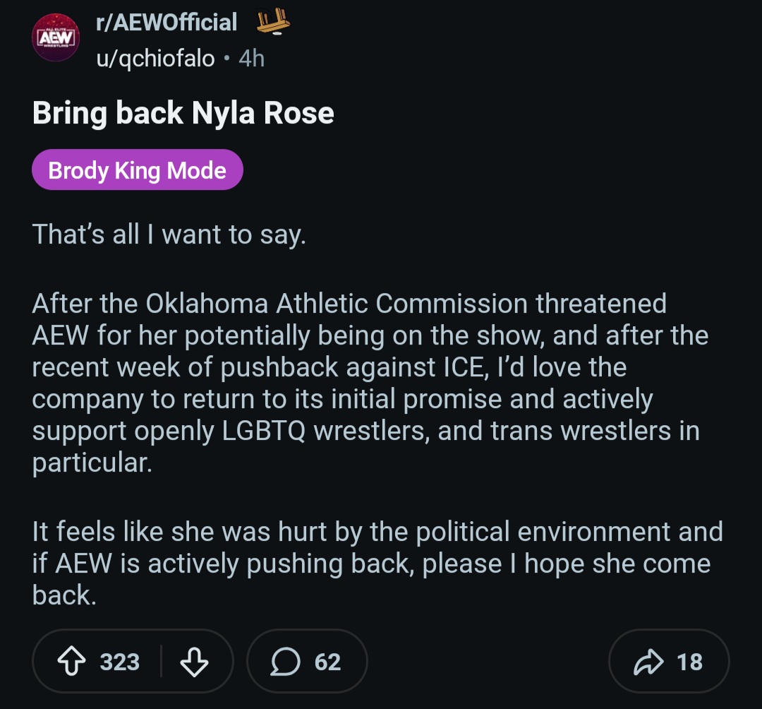 Now that AEW is making a firm stance against the fascist Trump administration is it time to bring back Nyla Rose?