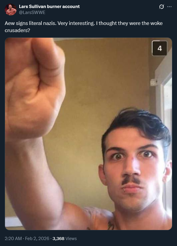 You really are a foreign retard aren't you, do you understand that Lars was mocking AEW for being the "progressive" company while singing someone who was fired over a joke? Your position is supposed to be: "Lars will be rejected by the right because [insert reasons here], this pathetic display does nothing for him to endear him to that crowd" etc