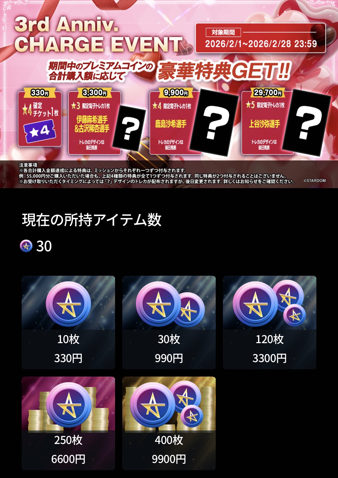 February 13th, "STARDOM NIGHTER in KORAKUEN 2026 Feb.", Korakuen Hall, Tokyo, 6:30PM JST (LIVE)>Hazuki & Fuwa-chan (-) vs Aya Sakura (COSMIC ANGELS) & Anne Kanaya (-)>High Speed Championship: (c) Yuna Mizumori (COSMIC ANGELS) vs Momo Kohgo (STARS)>rest of the card tba: https://wwr-stardom.com/event/20260213_korakuen/February 15th, "STARDOM in FUJI 2026 Feb.", Fujisan Messe, Shizuoka, 1:00PM JST (VOD)>Card tba: https://wwr-stardom.com/event/20260215_fuji-2/
